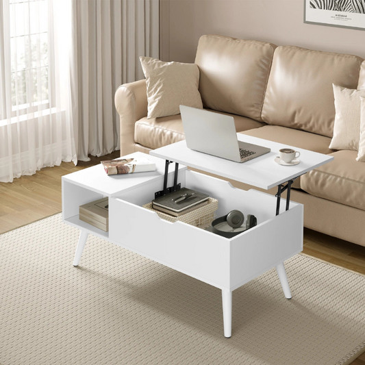 Table basse relevable en bois blanche